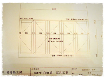 オーダー家具! 2017.02.13 皆様こんにちは(^-^) 来週の火曜日にオーダー家具が搬入されます! 2年も経つと物が増えて収納スペースが欲しくなりました。 デザインは結構大きめでお店の雰囲気に合うようアンティーク調になっています。 デザインも色ももの凄い悩みました(笑) 少し分かりづらいですが、図面を載せておきます! Post Share Hatena Pin it 2周年御祝い頂きました! フレンチスパ